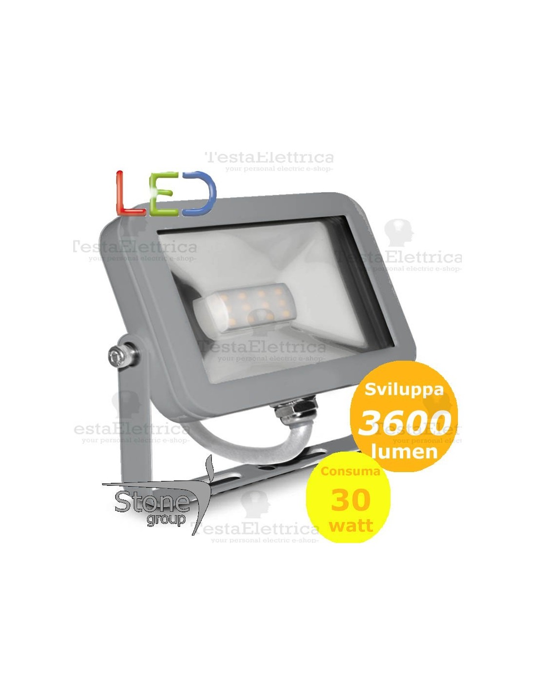 Proiettore  a Led interno/esterno, con grado di protezione dalle intemperie IP65. Vetro trasparente.