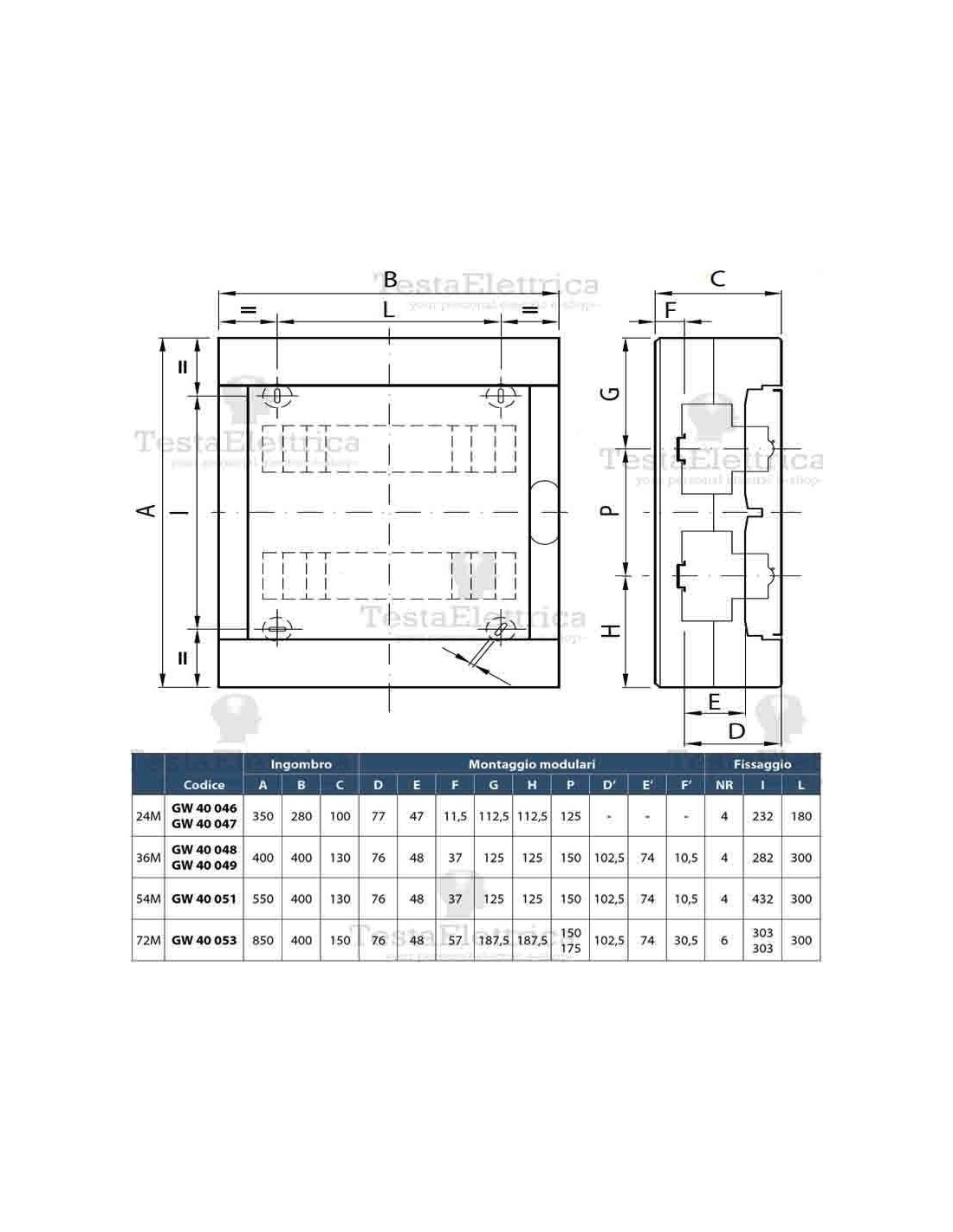 Centralino 24 moduli con morsettiera per quadri elettrici esterni 40046 Gewiss