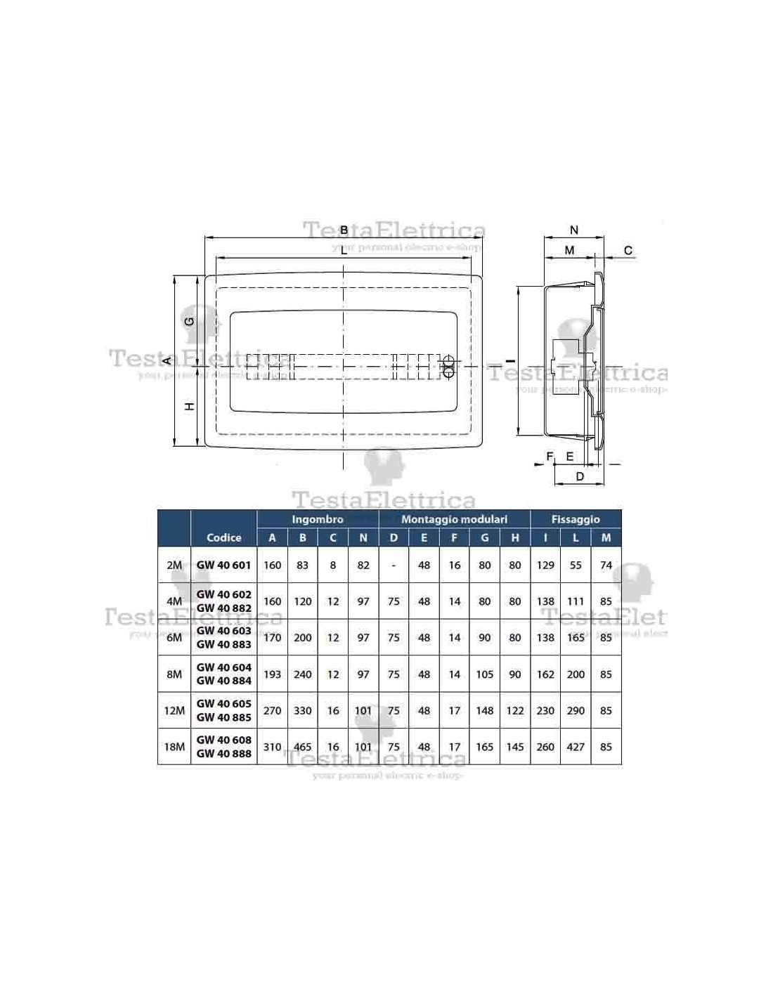 Centralino 2 moduli per quadri elettrici incasso 40601 Gewiss