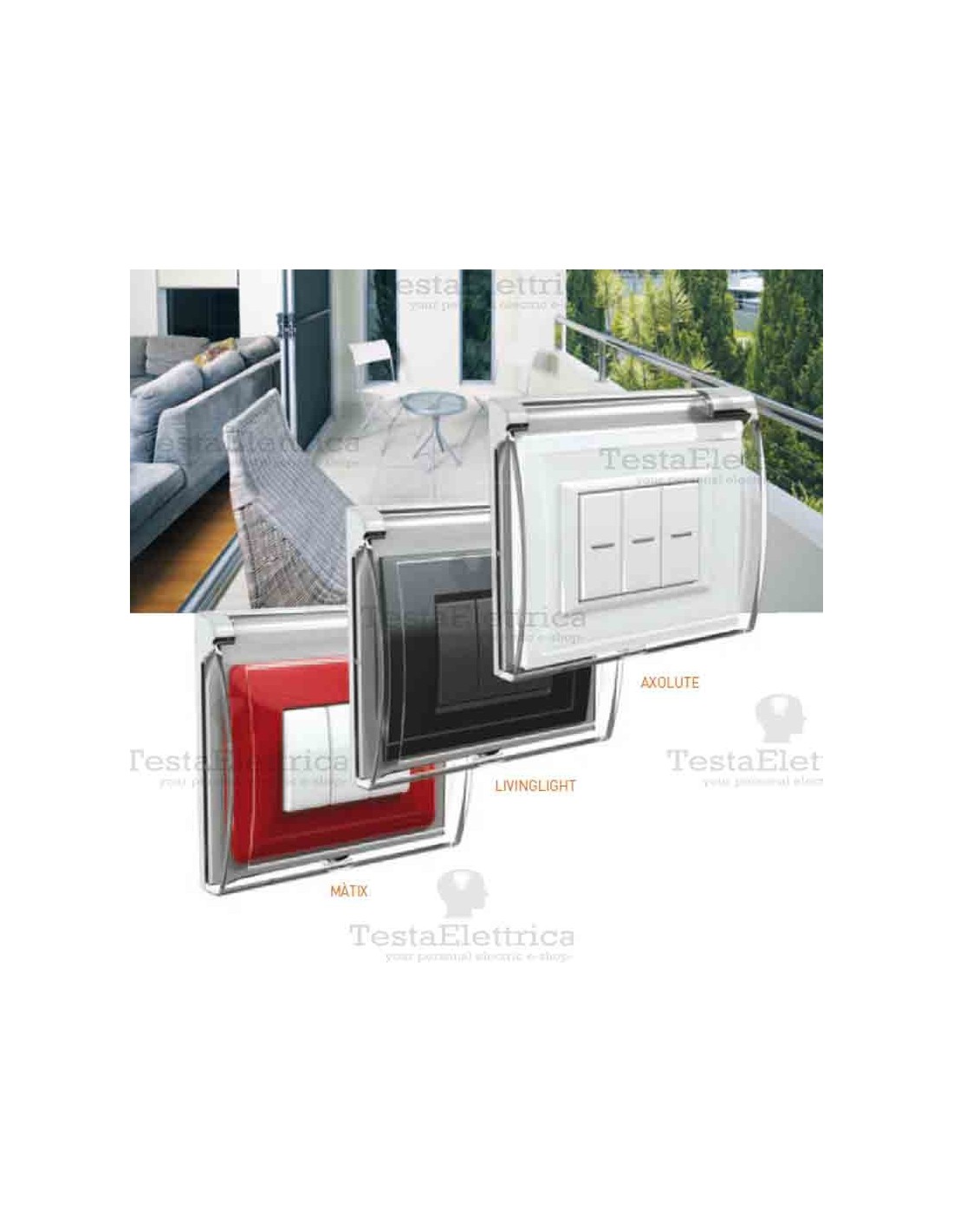 In impianti elettrici civili e professionali, custodia protettiva con grado di protezione dalle intemperie IP44 (garantita a sportello chiuso).
