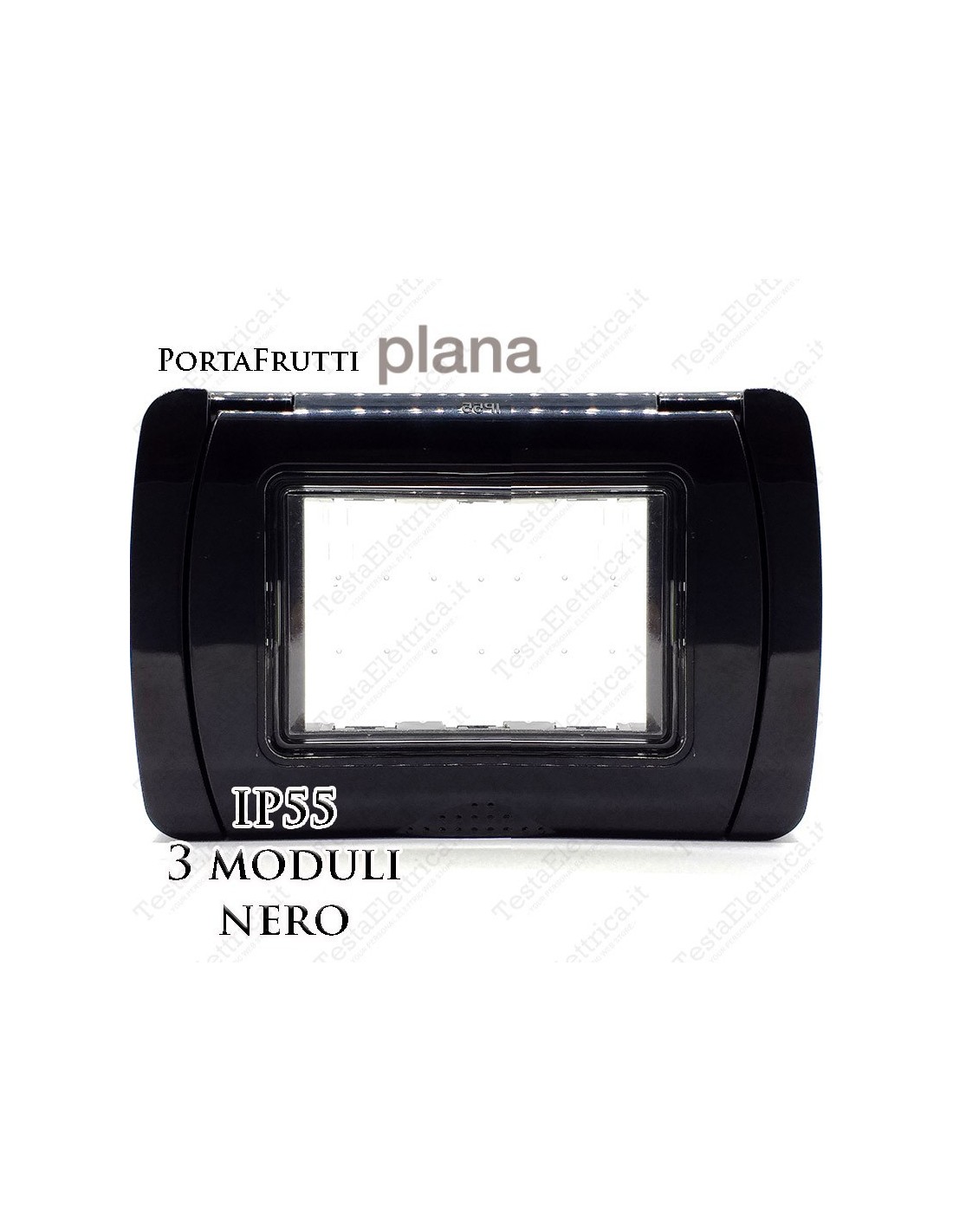 Coperchio 3 posti IP55 compatibile Vimar Plana nero