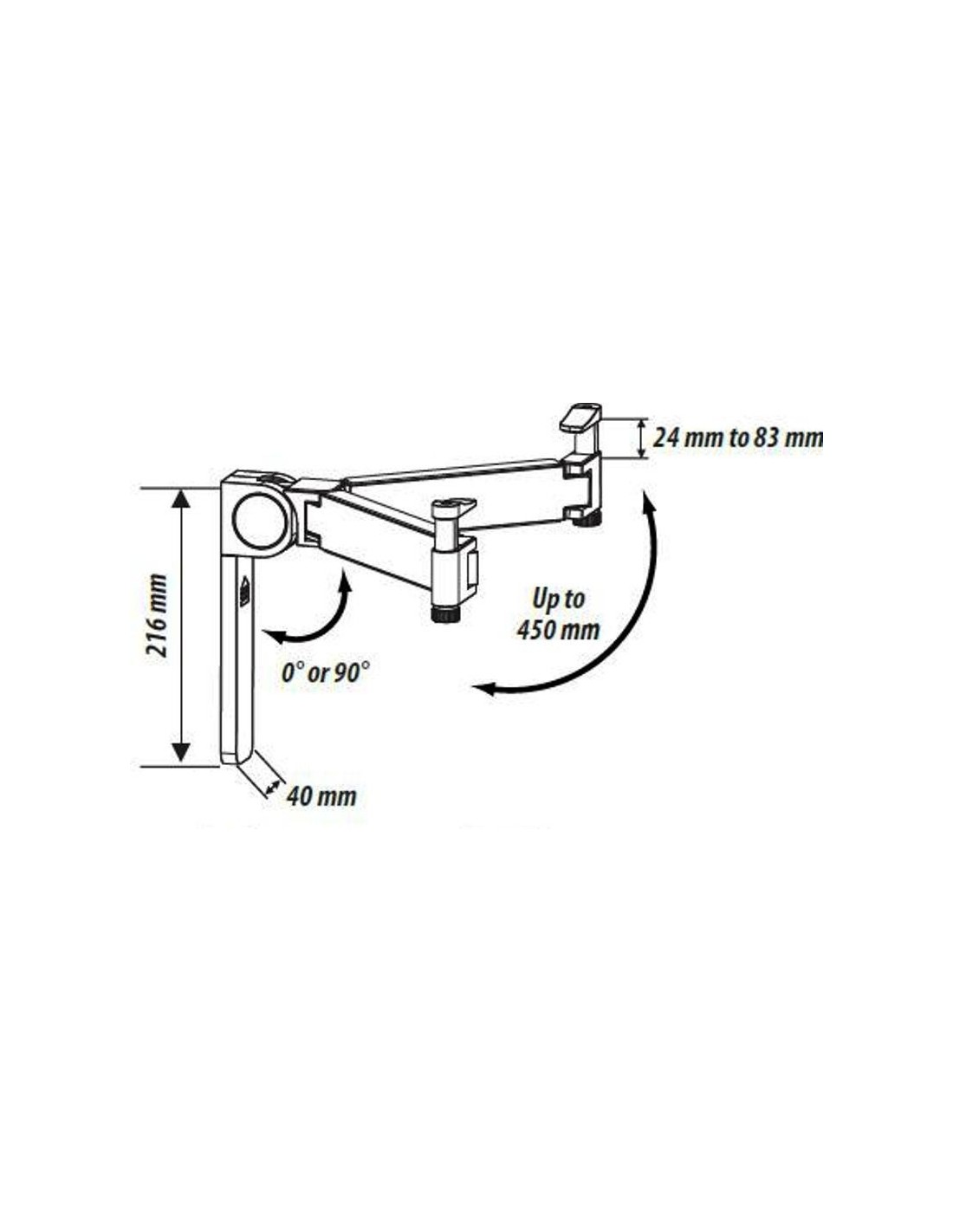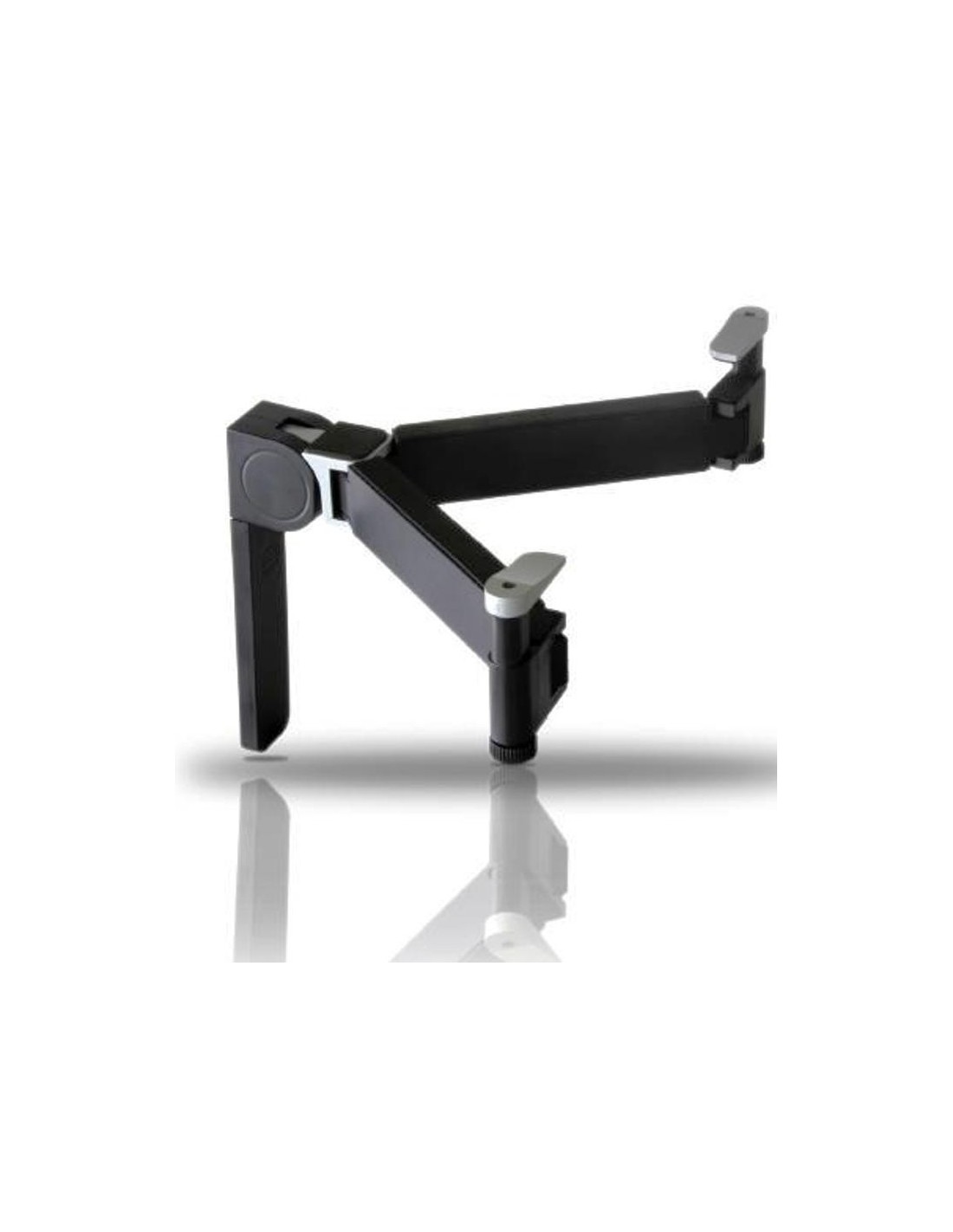 Bracci regolabili orizzontalmente che si adattano ad ogni lettore. Con possibilità di richiuderlo verticalmente occupando minor spazio.