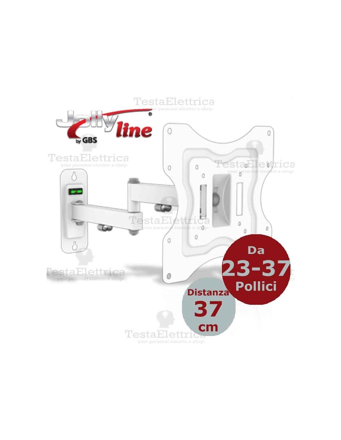 Supporto universale regolabile colore bianco per FLAT-TV da 23" a 37" con 3 snodi e 2 braccia, livella integrata e Kit di montaggio + fischer inclusi.