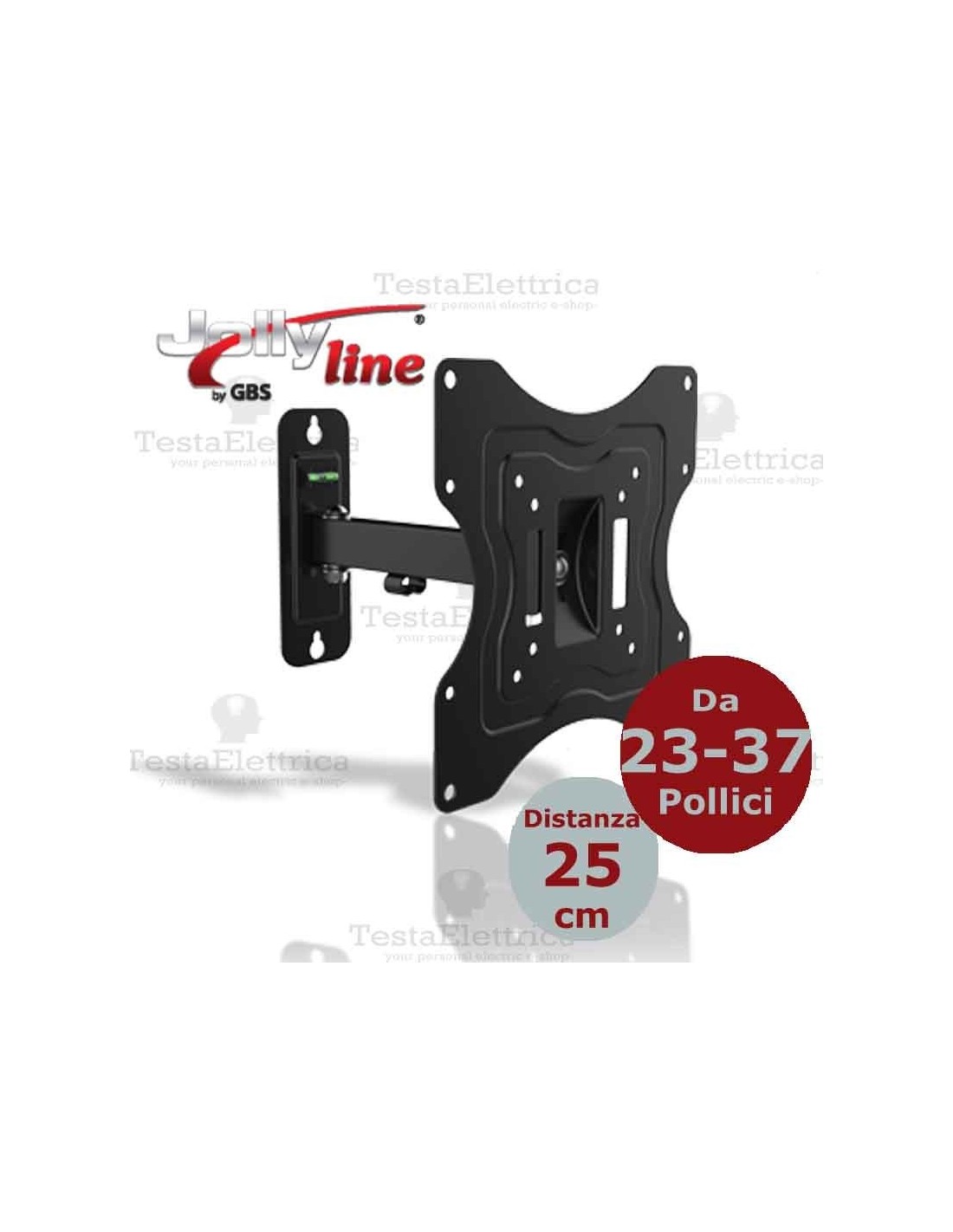 Supporto universale regolabile per FLAT-TV da 23" a 37" con 2 snodi e 1 braccio, livella integrata e Kit di montaggio + fischer inclusi.