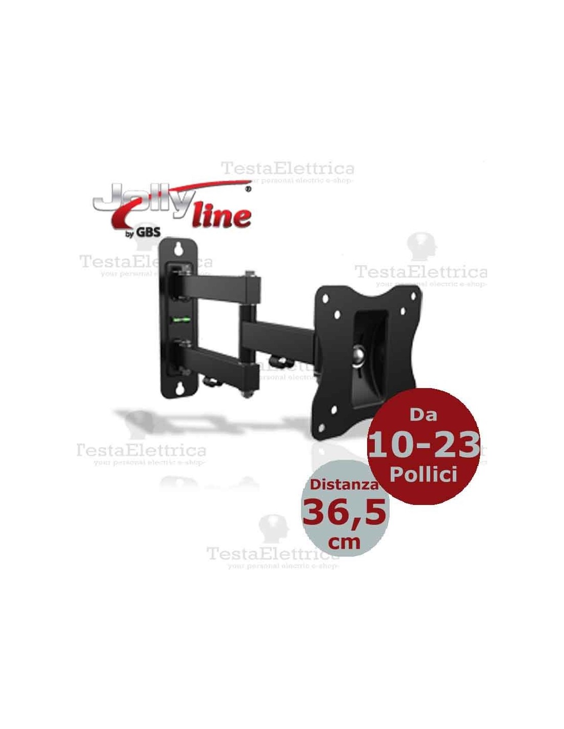 Supporto universale regolabile per FLAT-TV da 10" a 23" con 3 snodi e 2 braccia, livella integrata e Kit di montaggio + fischer inclusi.