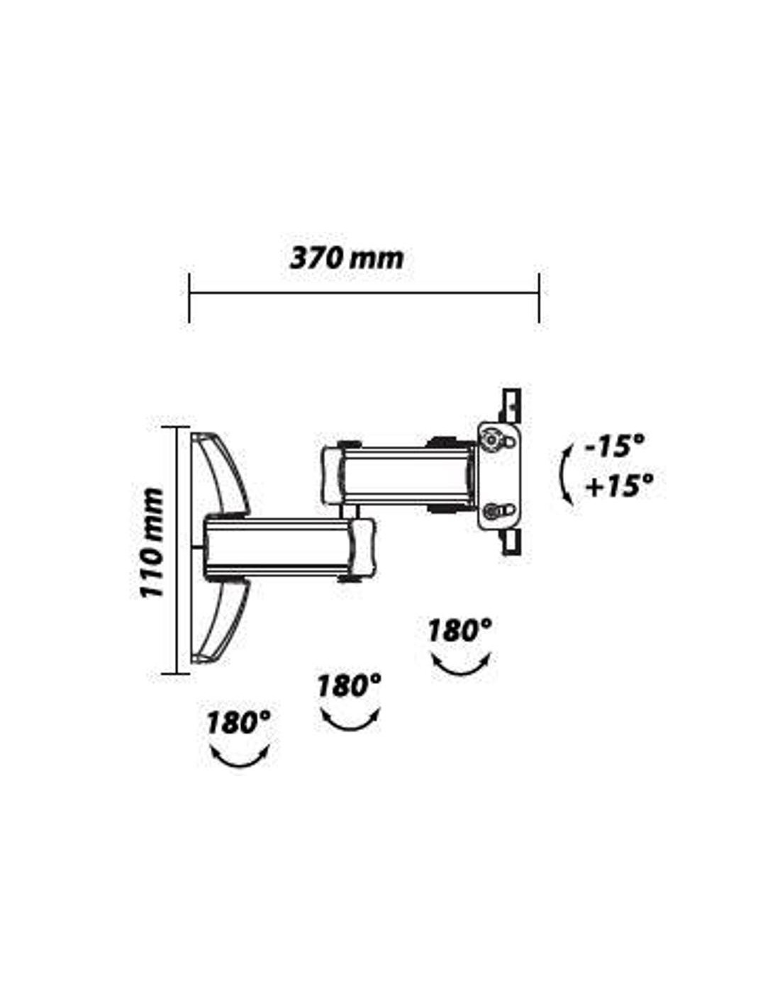 Supporto universale regolabile per FLAT-TV da 23" a 37" con 3 snodi ed 2 bracci, livella integrata e inserti in gomma anti-vibrazioni. Kit di montaggio e fischer inclusi.