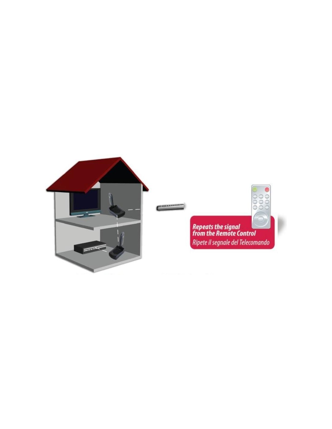 Questo dispositivo permette di trasmettere un segnale audio, video, o entrambi, da una sorgente (decoder SKY, mediaset premium, PC, Play station, XBOX, HI-FI, DVD, Lettori Blu-ray, ecc..) ad un apparecchio ricevente ( TV, monitor, videoproiettore, home theatre ecc).