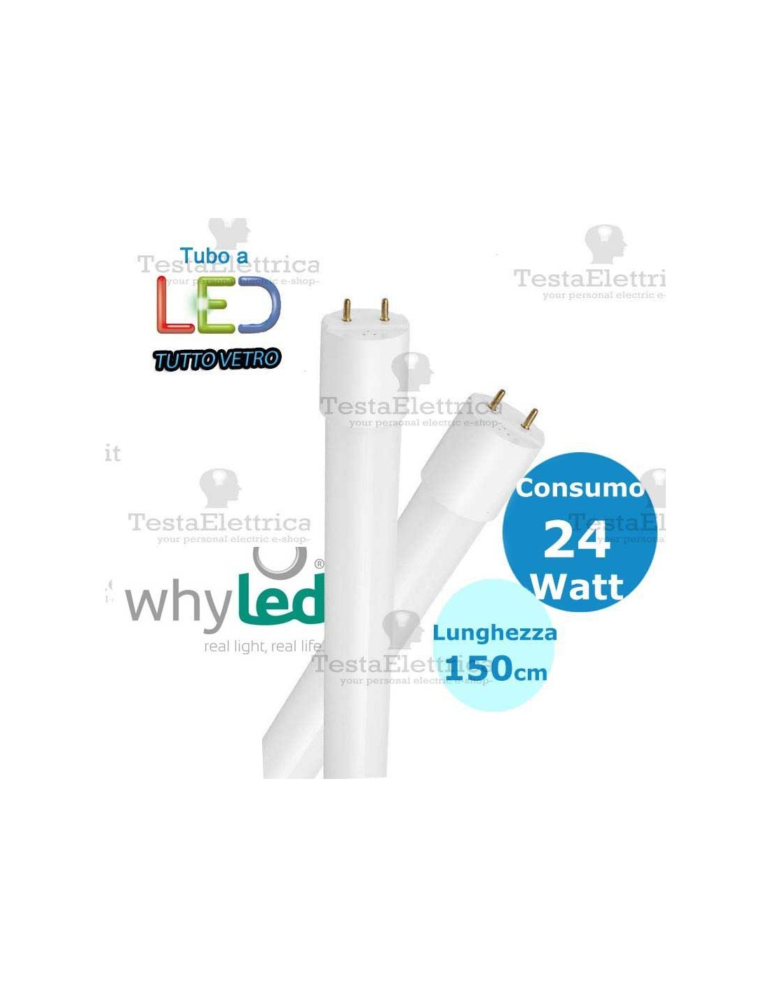 Tubo a led 150 cm T8 Tutto Vetro 24 watt Whyled by sice