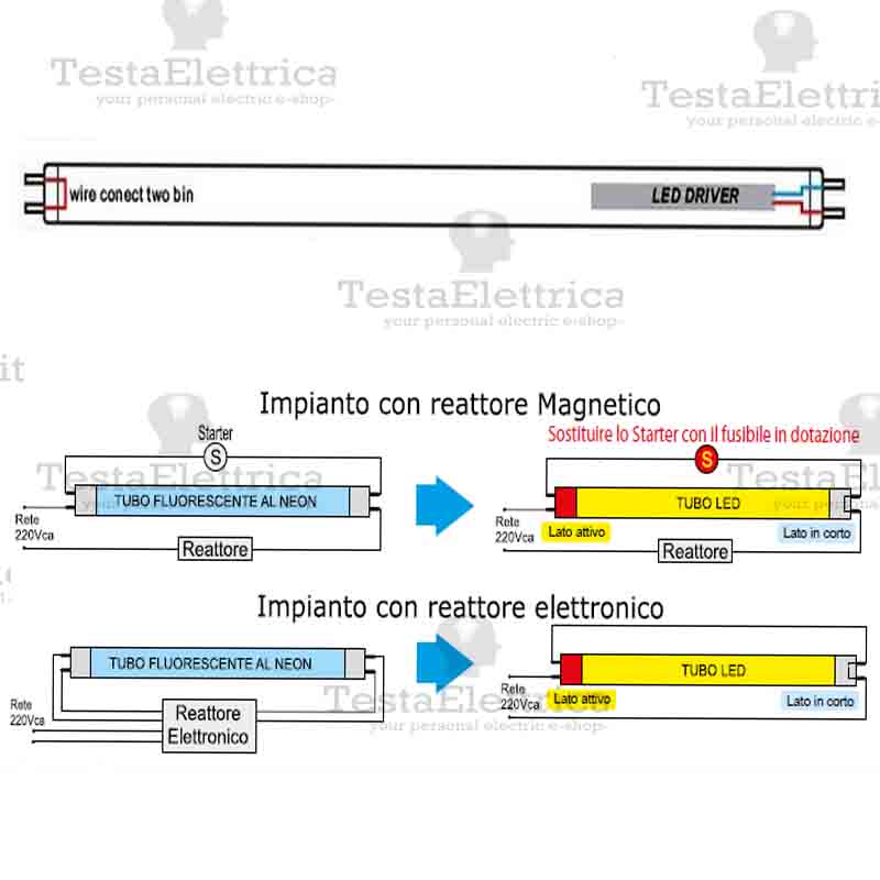 Sostituisce perfettamente la vecchia lampada al neon in plafoniere con trasformatore elettromeccanico (quello pesante), a patto di sostituire lo starter con il fusibile in serie nella confezione (incluso), mentre c'e bisogno di ricablare il circuito elimando il reattore in caso di plafoniere elettroniche (quello sottile e leggero).