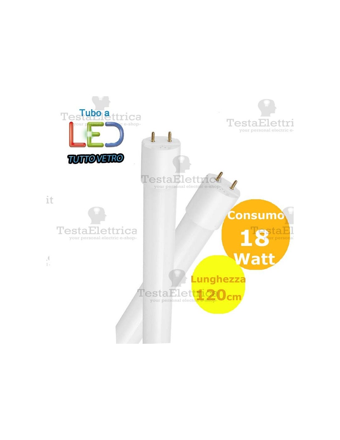Lampada a  led tipo fluorescente lineare realizzato in cover completamente in vetro, (simula perfettamente le vecchie lampade omologhe), una striscia di LED epistar SMD ultraluminosi su dissipatore in alluminio, e diffusore opalino per un' aspetto di illuminazione uniforme.
