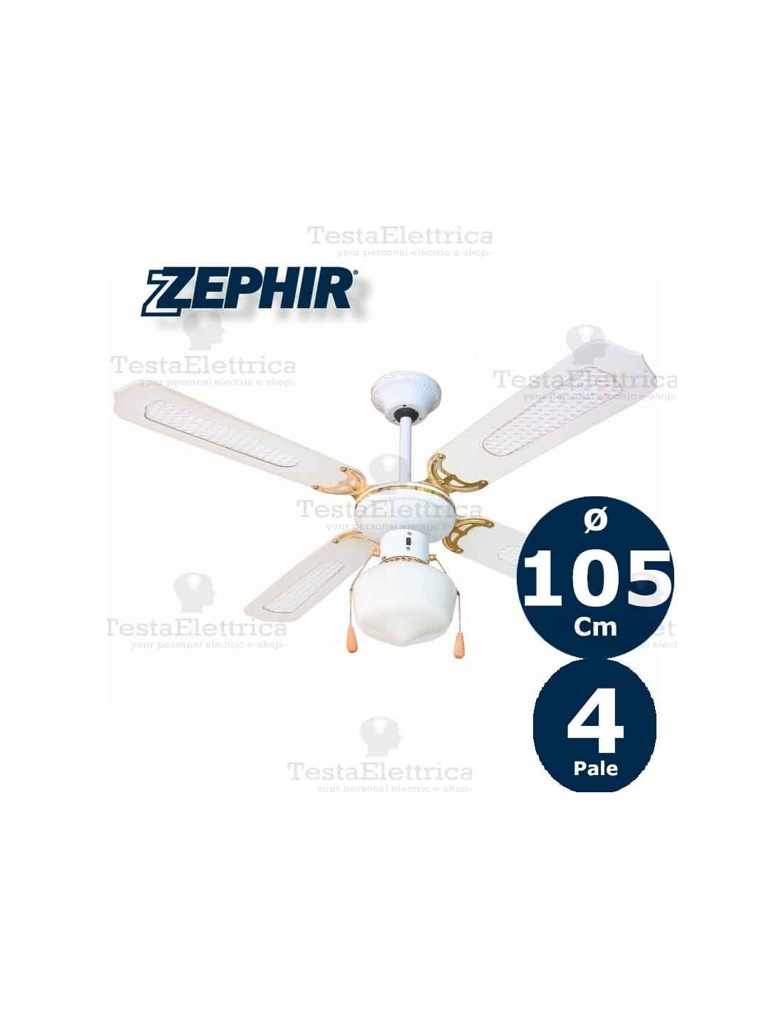 Ø 107 cm - 4 pale - 3 velocità - comando con cordicella - con luce