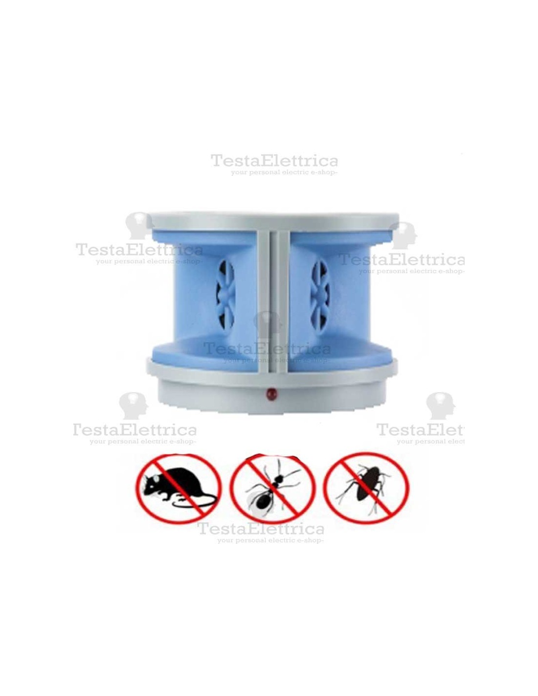 Allontana dagli ambienti topi, ratti, scarafaggi, pulci, grilli, formiche e altri insetti nocivi. Per appartamenti, villette, ristoranti, cantine, scuole, uffici, ecc.. Ecologico, non utilizza alcuna sostanza chimica. Innocuo verso l’uomo e verso la maggior parte degli animali domestici. Non richiede installazione. Dotato di LED rosso indicatore di operatività e di tasto TEST per verifica funzionamento.